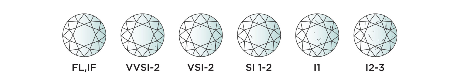 This relates to the marks of non-crystallised carbon called ‘inclusions’ found within the diamond. The inclusions vary in standards on the spectrum ranging from FL (flawless), SI1 to I3.